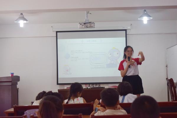 2018年7月18日上午7时30分,志愿者们准时到达黄鹂社区“假日学校”。本次课堂共三节课程,分为“预防肺结核”、“青少年夏季饮食”及“道德文明礼仪”讲座。特邀俞芬芬老师做“预防肺结核”、“青少年夏季饮食”讲座主讲,“道德文明礼仪”讲座由电子信息工程学院团委学生会新媒体中心助理王原原主讲。